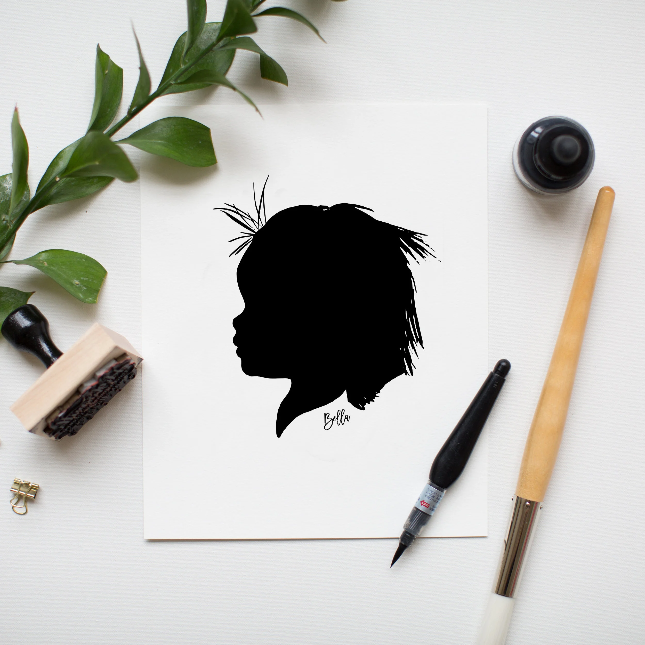 Once you place your order, you will be sent instructions on how to take and send your child's photo. Photos are best when taken in bright lighting in front of a window or plain wall and you should have the camera at the same height as your child's head. It looks best when long hair is either pulled up completely or swept over the shoulder closest to the camera. For babies, try lying them down on a white sheet on their side to get the best profile view.